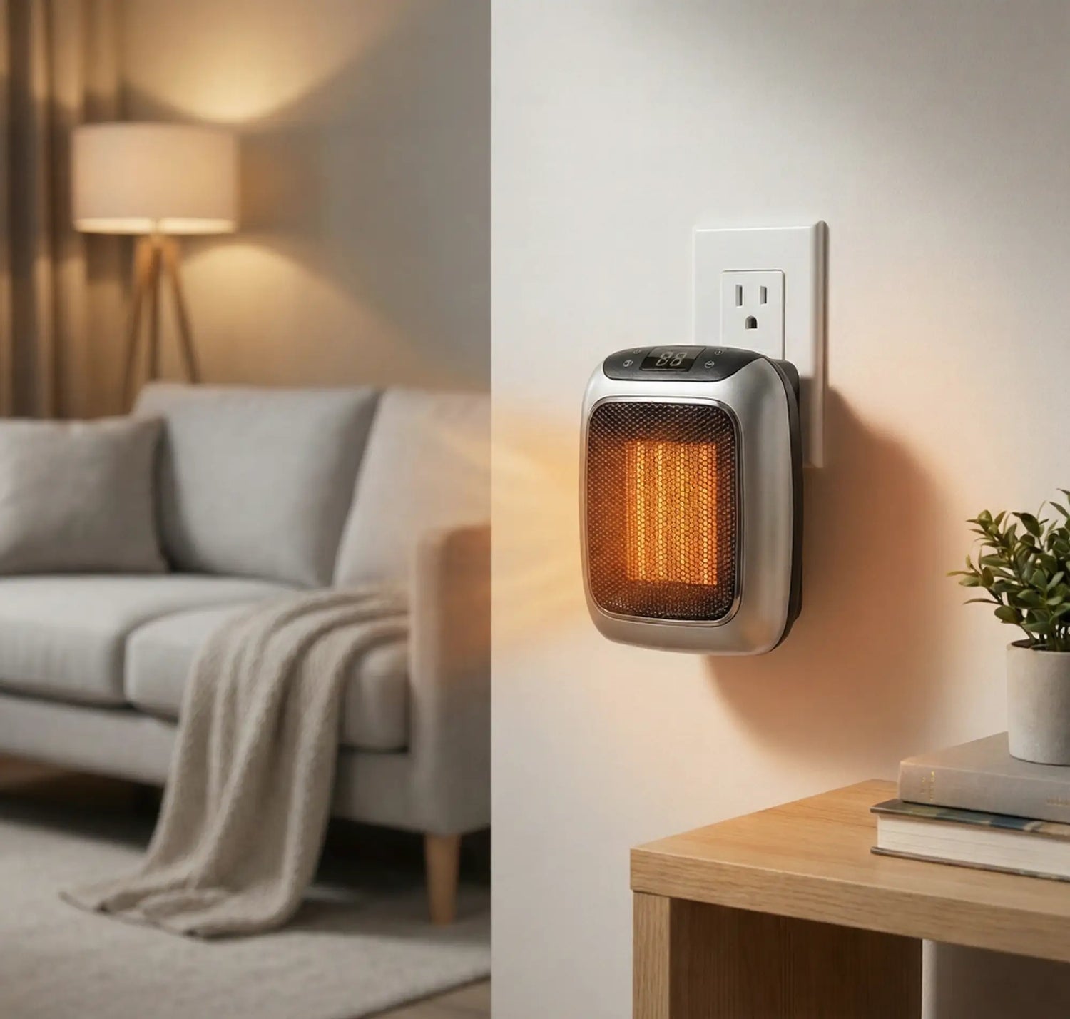 Handy Heater Turbo Heat wall socket mein direct plug hota hai aur advanced ceramic heating technology ke zariye seconds mein garmahat deta hai.